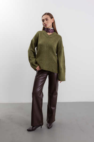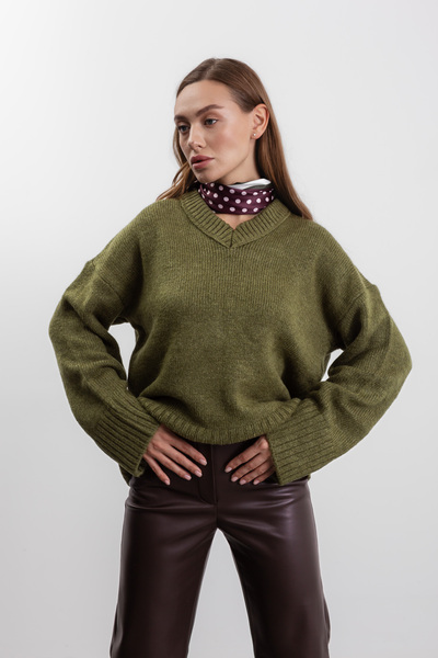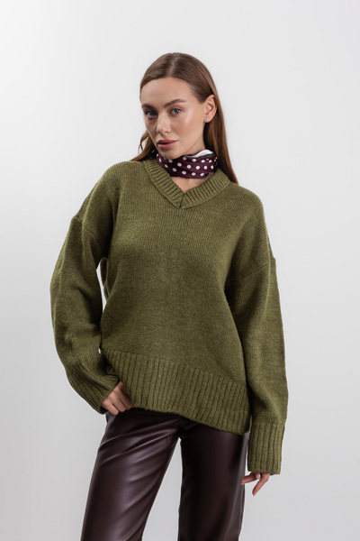 • Светр вільний KOF-47681 Зелений one size Хакі Хакі one size