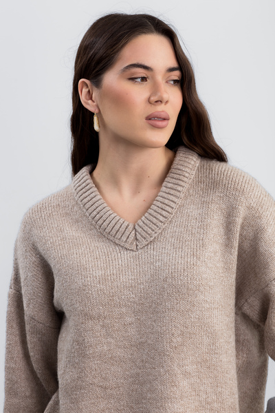 - Светр має вільний крій (oversize), що забезпечує максимальний комфорт і свободу рухів. Він ідеально підходить для створення багатошарових образів, а також для повсякденного носіння.