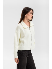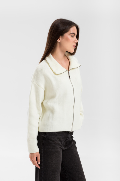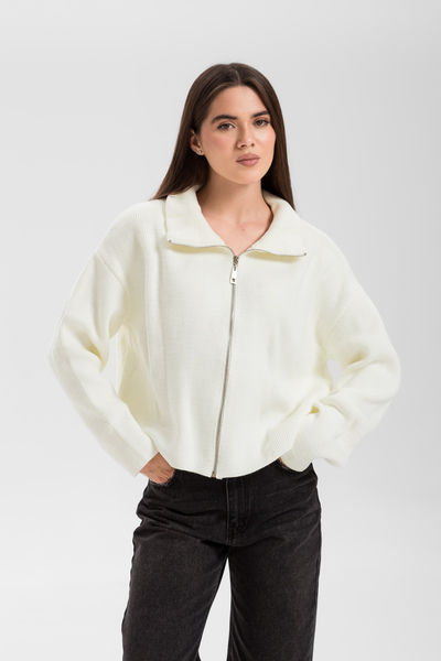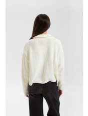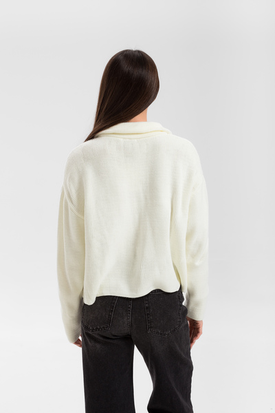 Цей вільний светр KOF-92576 у глибокому білому кольорі є незамінним елементом гардеробу, який поєднує в собі комфорт та універсальність.
