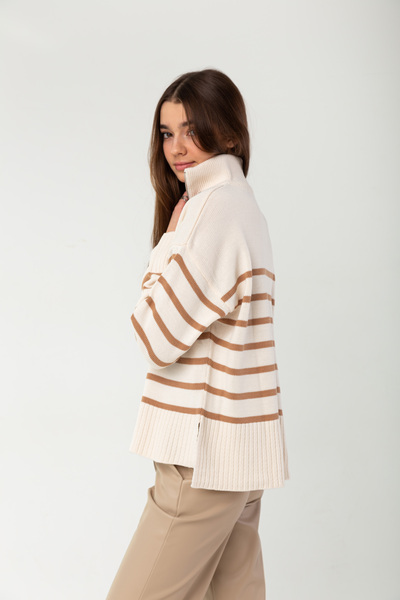 Зручний в’язаний светр – must have у гардеробі кожної дівчини. Трендова смужка прекрасно доповнить ваші повсякденні образи.