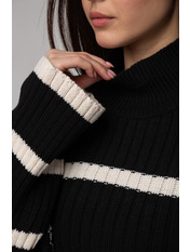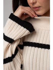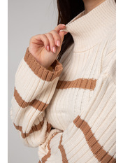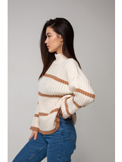 Зручний в'язаний светр – must have у гардеробі кожної дівчини. Смугастий дизайн урізноманітнить ваші повсякденні образи, тож поспішайте замовити цю модель светра на нашому сайті.