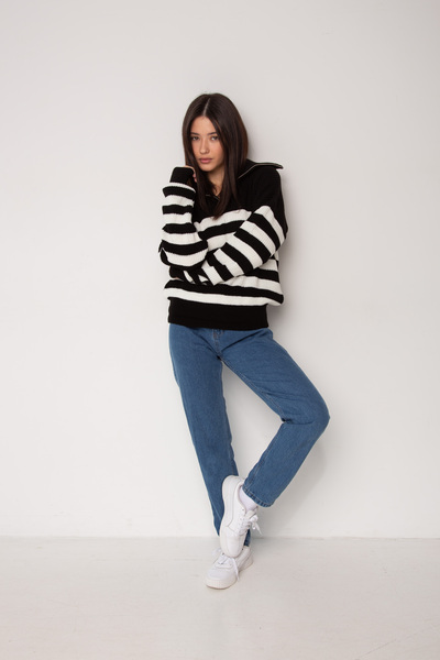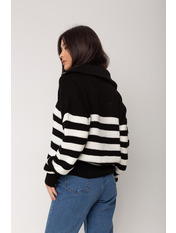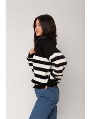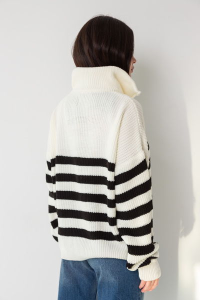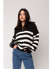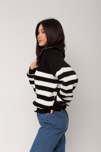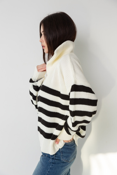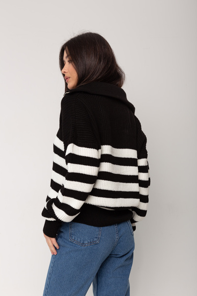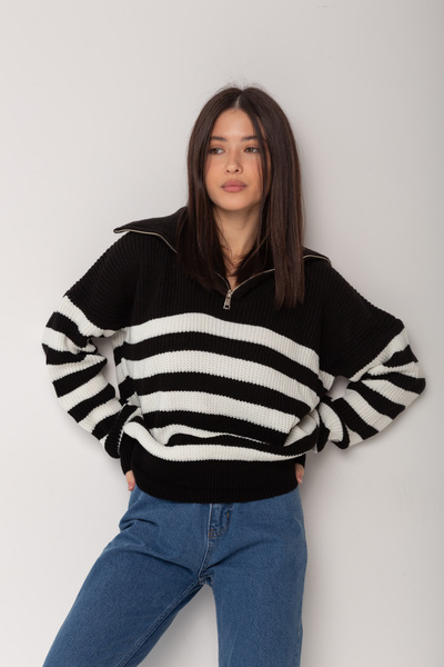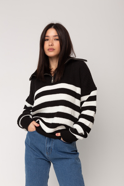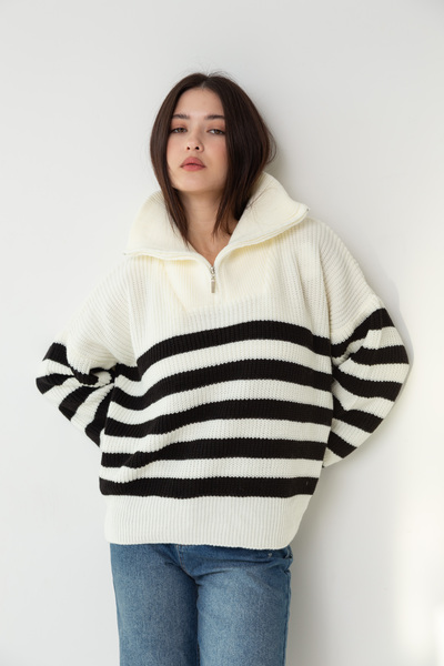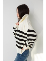 Светр в'язаний вільний на замку в смужку KOF-KP-7655