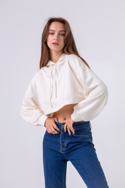 Довжина виробу, обхват грудей та довжина рукава відповідають розмірній сітці. Світшот вкорочений, з капюшоном.Як доглядати та носити