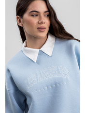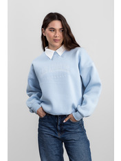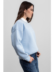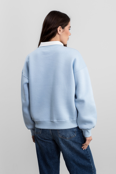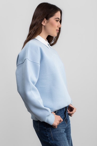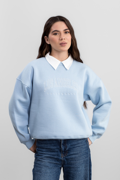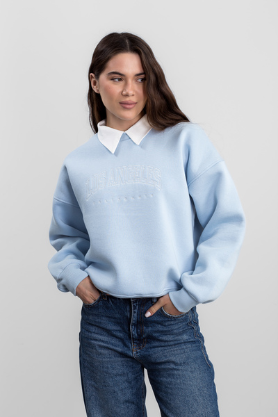Цей затишний світшот з вишивкою на флісовій підкладці SW-F-534 у блакитному кольорі є ідеальним вибором для прохолодних днів, поєднуючи комфорт, тепло та стильний дизайн.