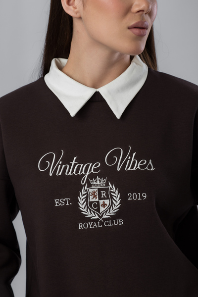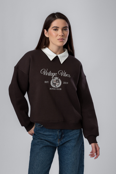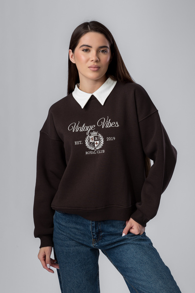 • Світшот з вишивкою на флісі SW-F-535 XS/S Коричневий Коричневий XS/S