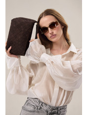 Країна виробник Китай Склад Еко-замша Тип застібки Блискавка Розмір 27*13*11 Кількість відділень 2 Сезон Всі сезони Підкладка Так Розмір виробу Маленькі Колір Шоколадний -
