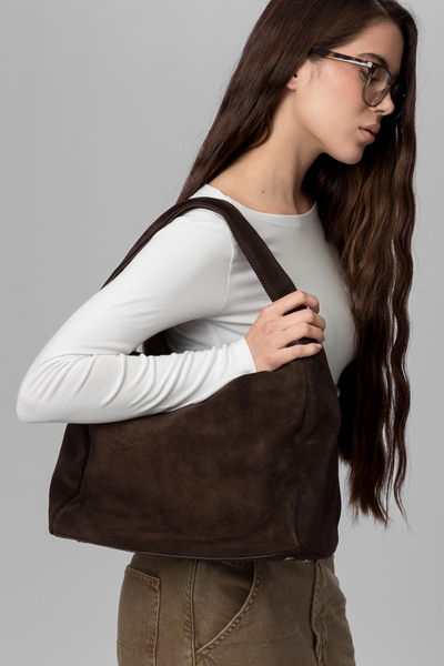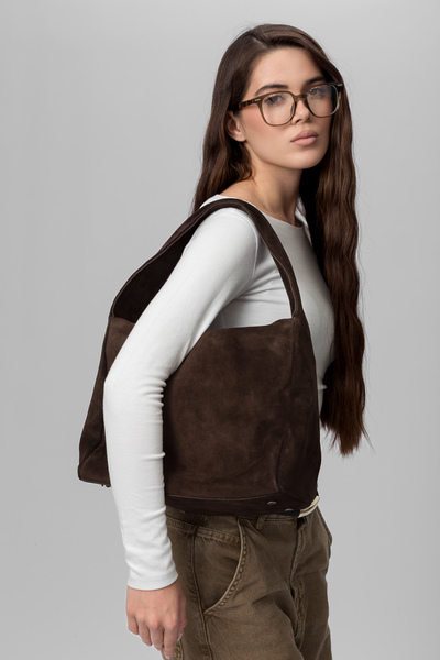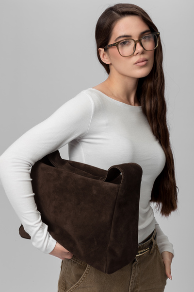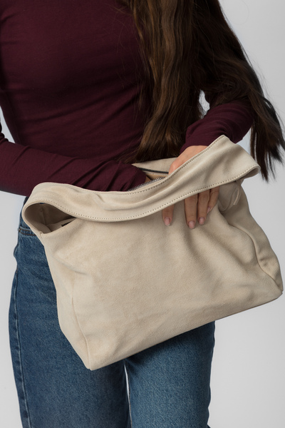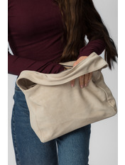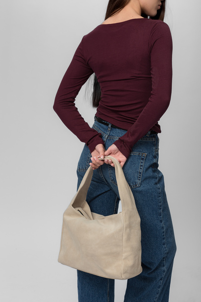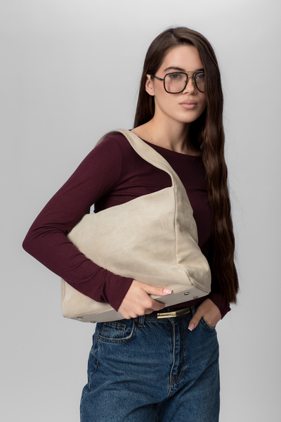 Сумка жіноча з натуральної замші SYM-20026 у кольорі світлий бізон — елегантний і витончений аксесуар, що додасть шарму вашому образу та підкреслить природну стриманість стилю.