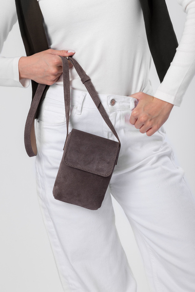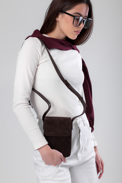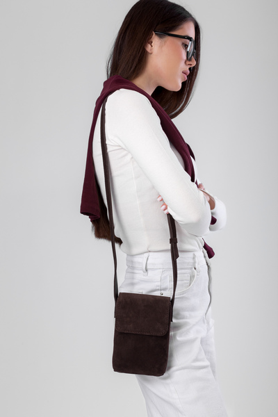 • Сумка жіноча з натуральної замші SYM-50022-1 Темно-коричневий Коричневий