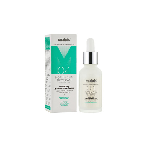 Сироватка MEDDIS Norma skin program - діє на епідерміс максимально глибоко та швидко. Підсушує висипи та зменшує почервоніння, покращує стан шкіри з висипаннями, та регулює роботу сальних залоз
