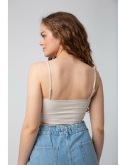 Варто зазначити, що топ досить короткий. Тоненькі бретельки легко регулюються.
