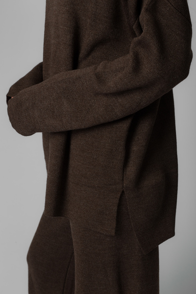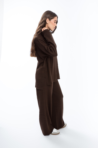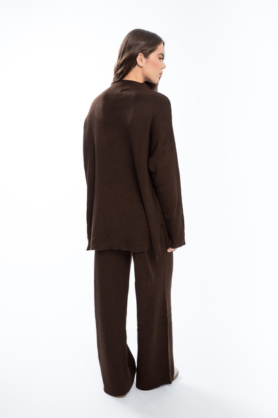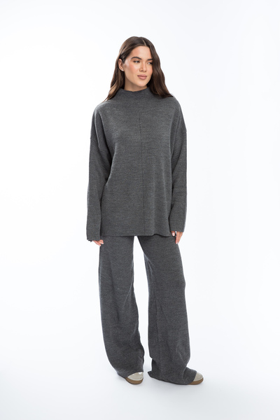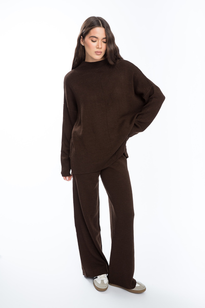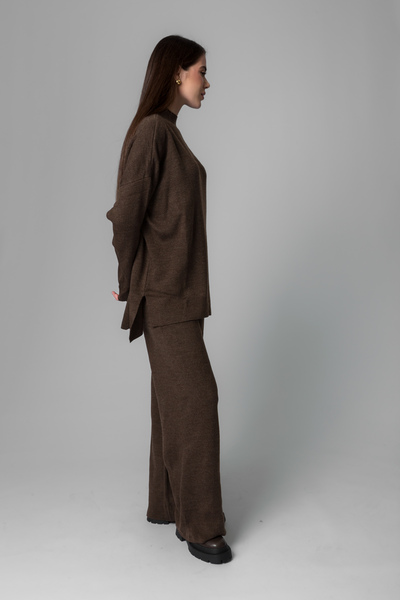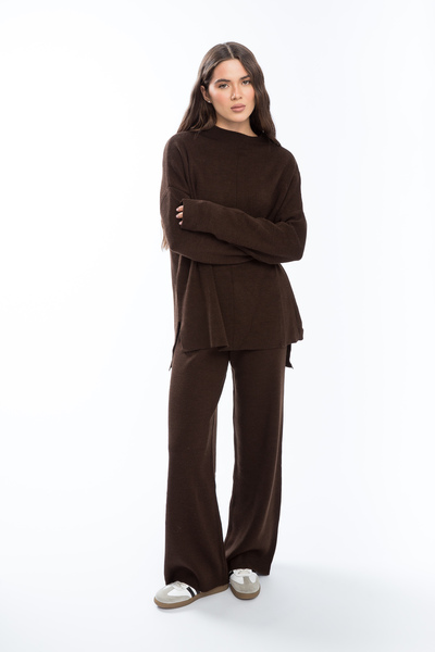 Трикотажний костюм — це стильний і теплий комплект, ідеальний для прохолодного осінньо-зимового сезону. Костюм складається зі зручної кофти і штанів, що створюють комфортний і водночас елегантний образ. Завдяки м'якому трикотажу з 100% акрилу, цей костюм забезпечує комфорт і затишок протягом усього дня. Лаконічний дизайн і універсальний колір дозволяють комбінувати його з різними аксесуарами та взуттям, створюючи як повсякденні, так і більш формальні образи.