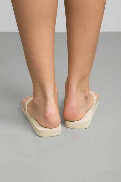 - Молочний відтінок додає взуттю універсальності: в'єтнамки легко поєднуються із пляжним, спортивним чи міським одягом.