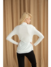 Водолазка представлена в дуже ніжних кольорах. Вирізу у виробу немає. З обох боків тканина стягнута, утворюючи красиві декоративні складки.Як доглядати та носити