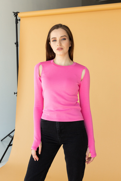 Рожева водолазка з декоративними розрізами GO-760 (384499)