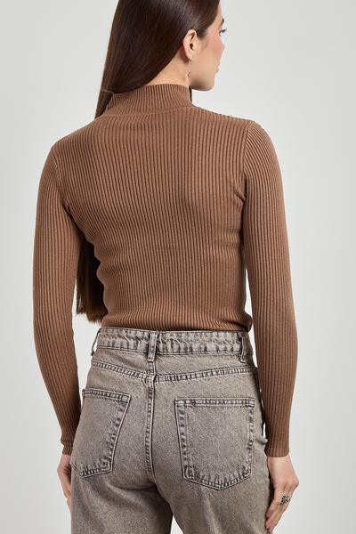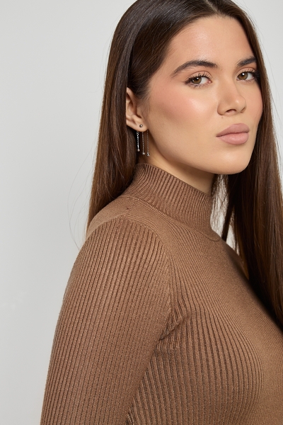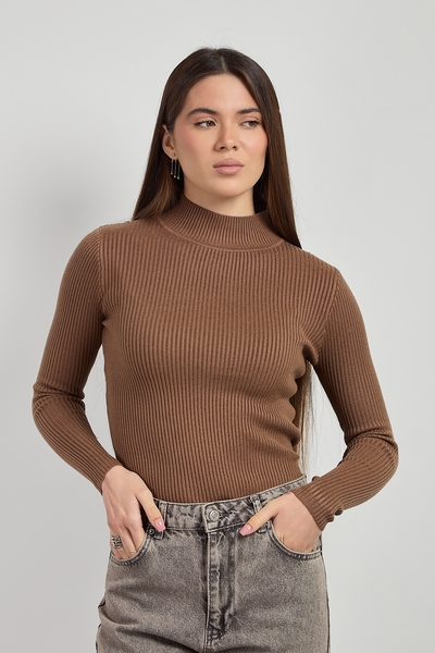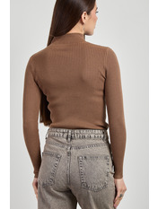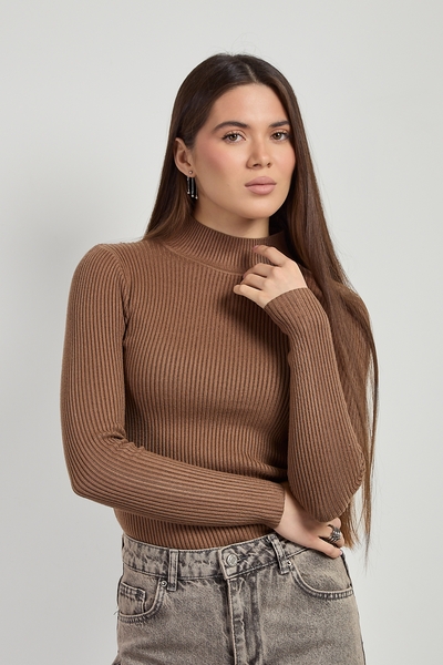 Водолазка приталеного крою, фактурна тканина виглядає стильно та цікаво. Зручний м'який комір – особливість даної моделі.