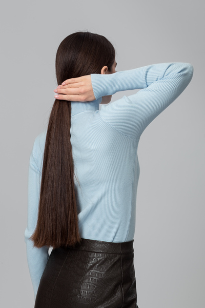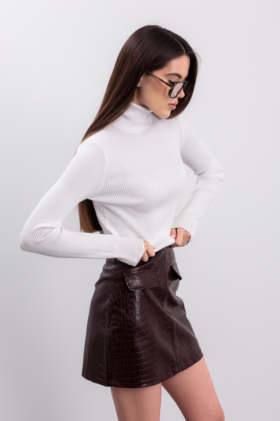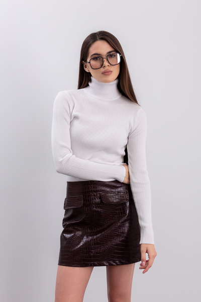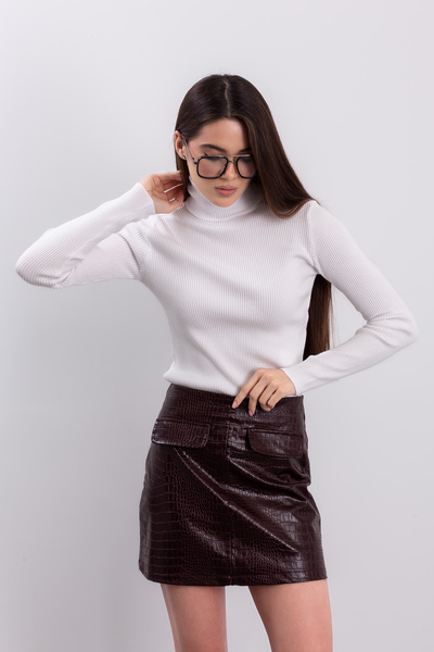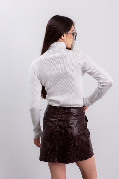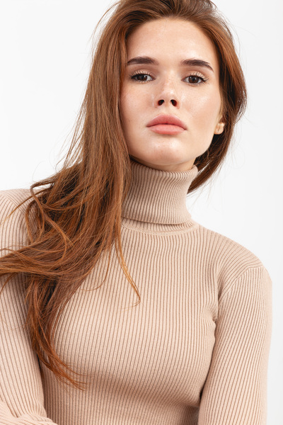 - Водолазка має приталений крій, що елегантно підкреслює фігуру, створюючи витончений та сучасний образ.