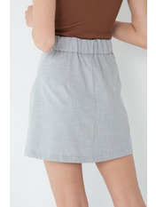 Жіночна коротка спідниця доповнить образ кожної красуні. Чудово підкреслює талію та майже не відчувається на тілі. Модель у сірому кольорі з вирізом знизу, талія на резинці.